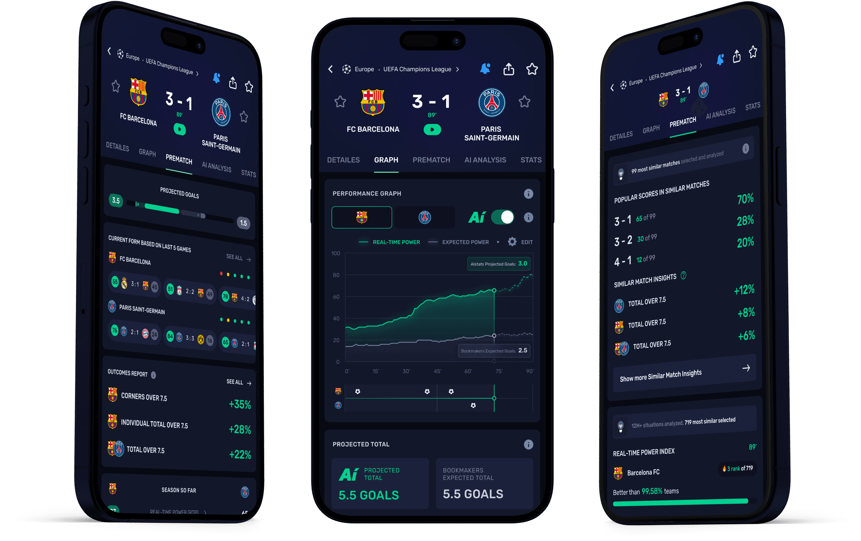 Live is not just about watching the game — it’s about reacting smarter than the market. With AIstats, you’re not guessing anymore.